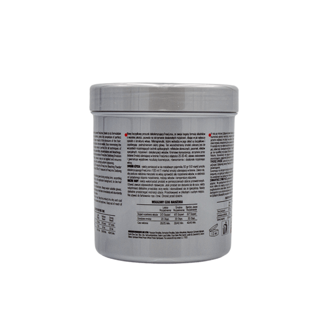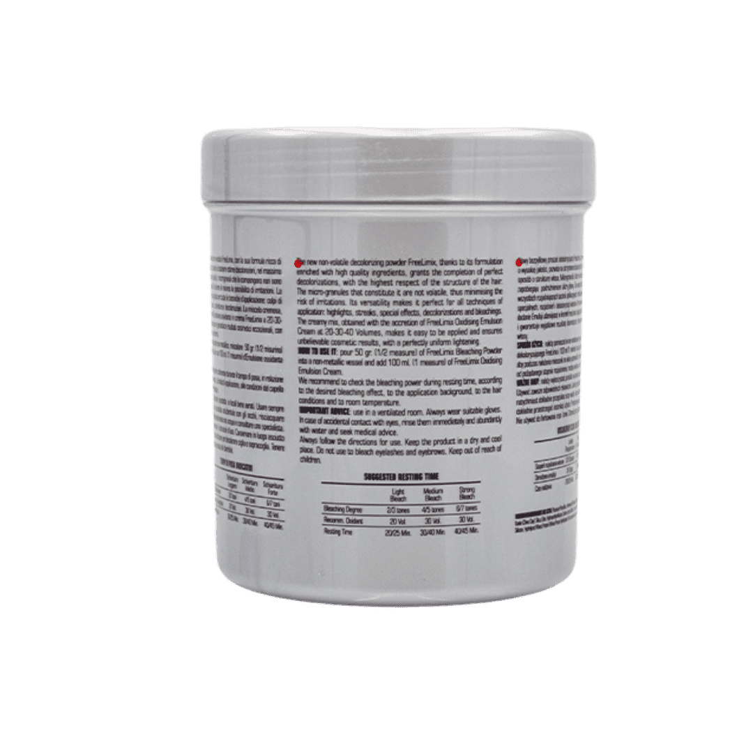 تسمح بودرة التبييض فري ليمكس بتفتيح الشعر للوصول إلى التفتيح المطلوب ، وعند مزجه مع كريم فري ليمكس المؤكسد ،