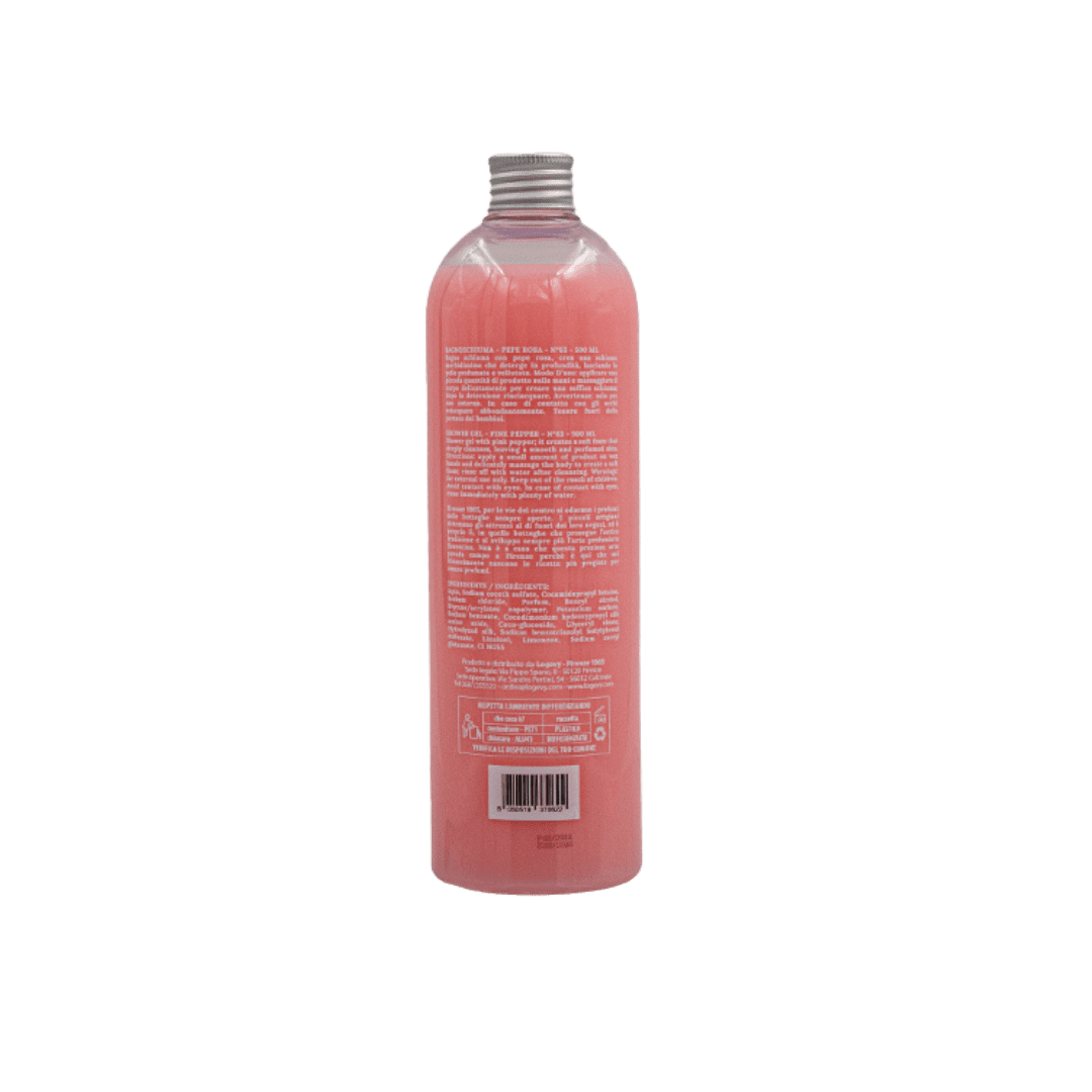 المكونات: الفلفل الوردي هو في الأصل من وسط أمريكا ، ثمرة شجرة Schinus molle دائمة الخضرة ، وله تأثير مهدئ ومرطب ومغذي.