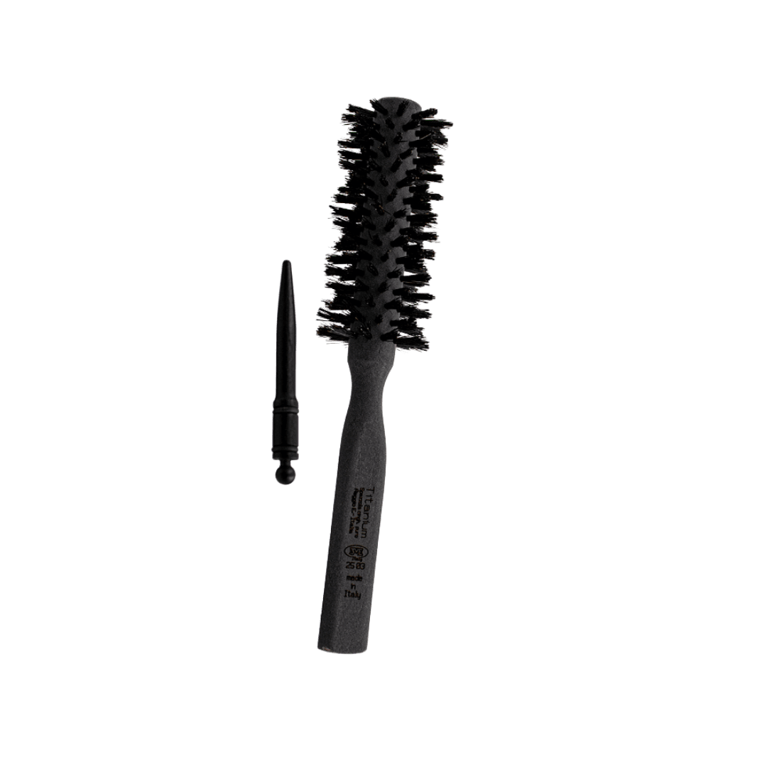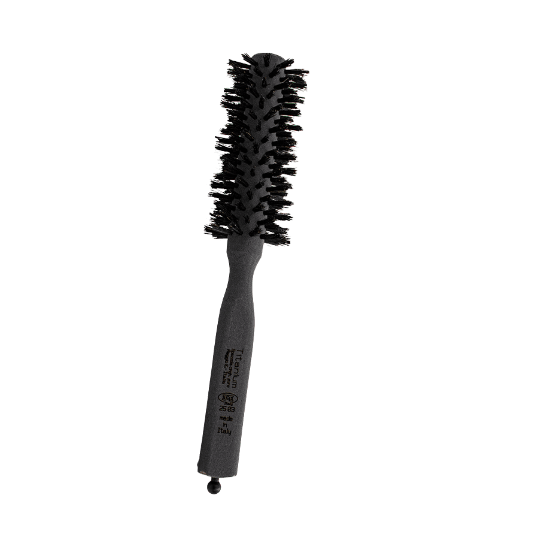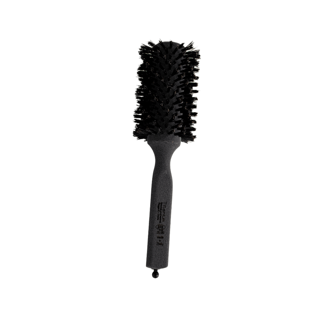TITANIUM ROUND BRUSH WITH REINFORCES PURE BRISTLES.