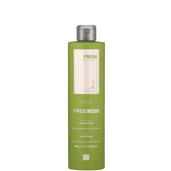 RESH refreshing mask by FREELIMIX. Thanks to the blend of exotic fruits and cactus flowers, it oxygenates, purifies and intensely hydrates the scalp and hair, providing a pleasant sensation of freshness. Formula without SLS / SLES and PARABENS.
