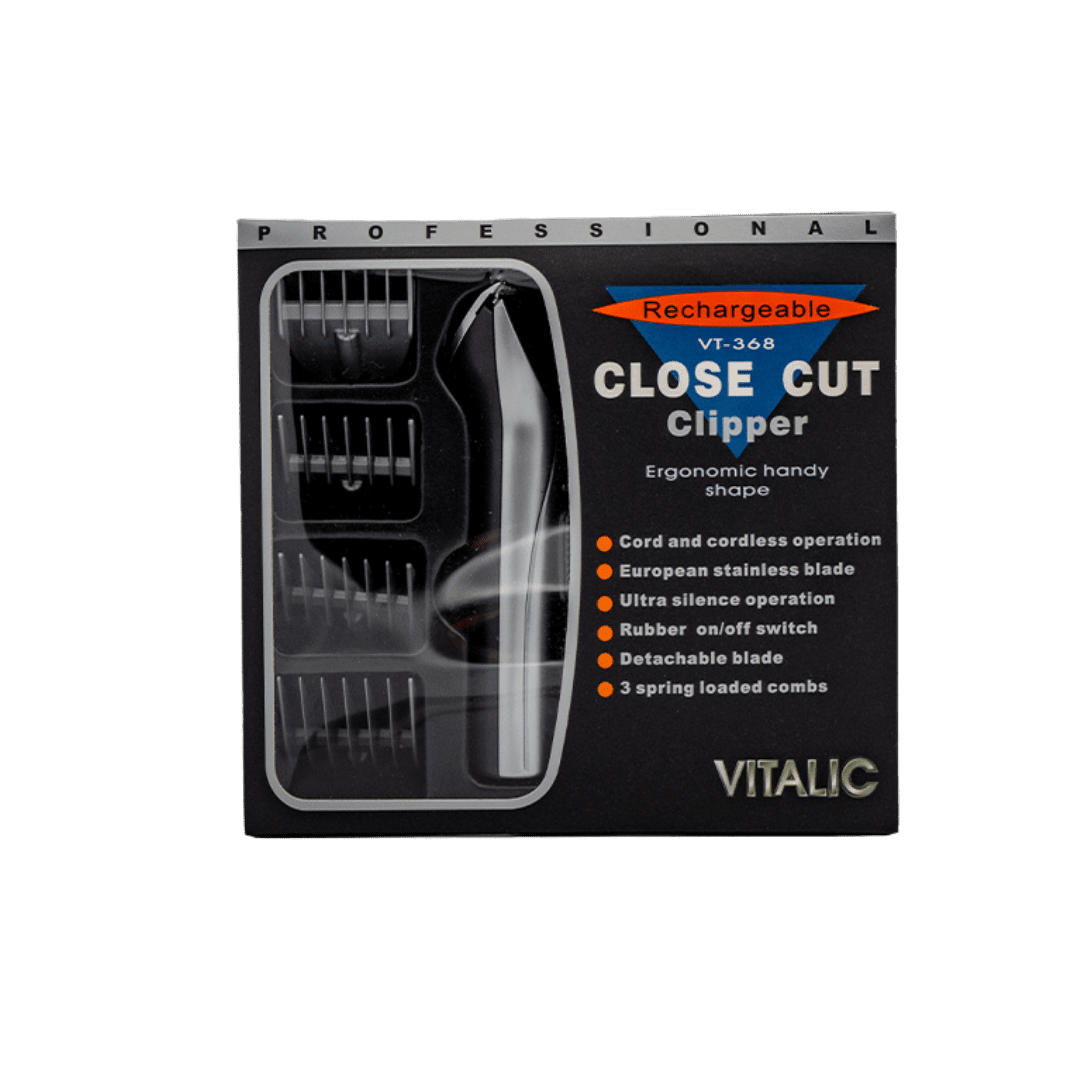 • Cord and cordless operation, European stainless blade, ultra-silence operation, rubber on/off switch detachable blade, 3 spring loaded combs.